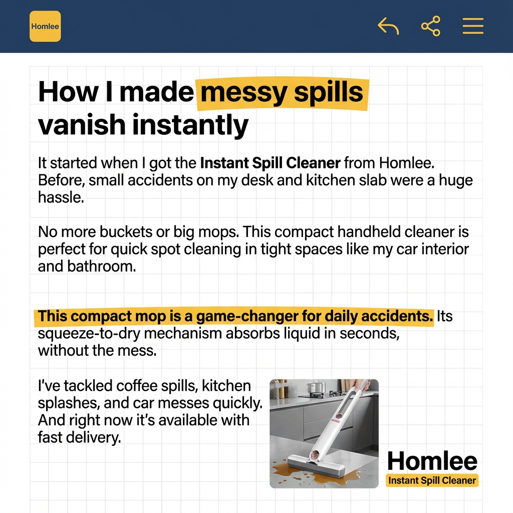 Mini Handheld Mop for Kitchen Spills, Tea & Coffee Cleaning