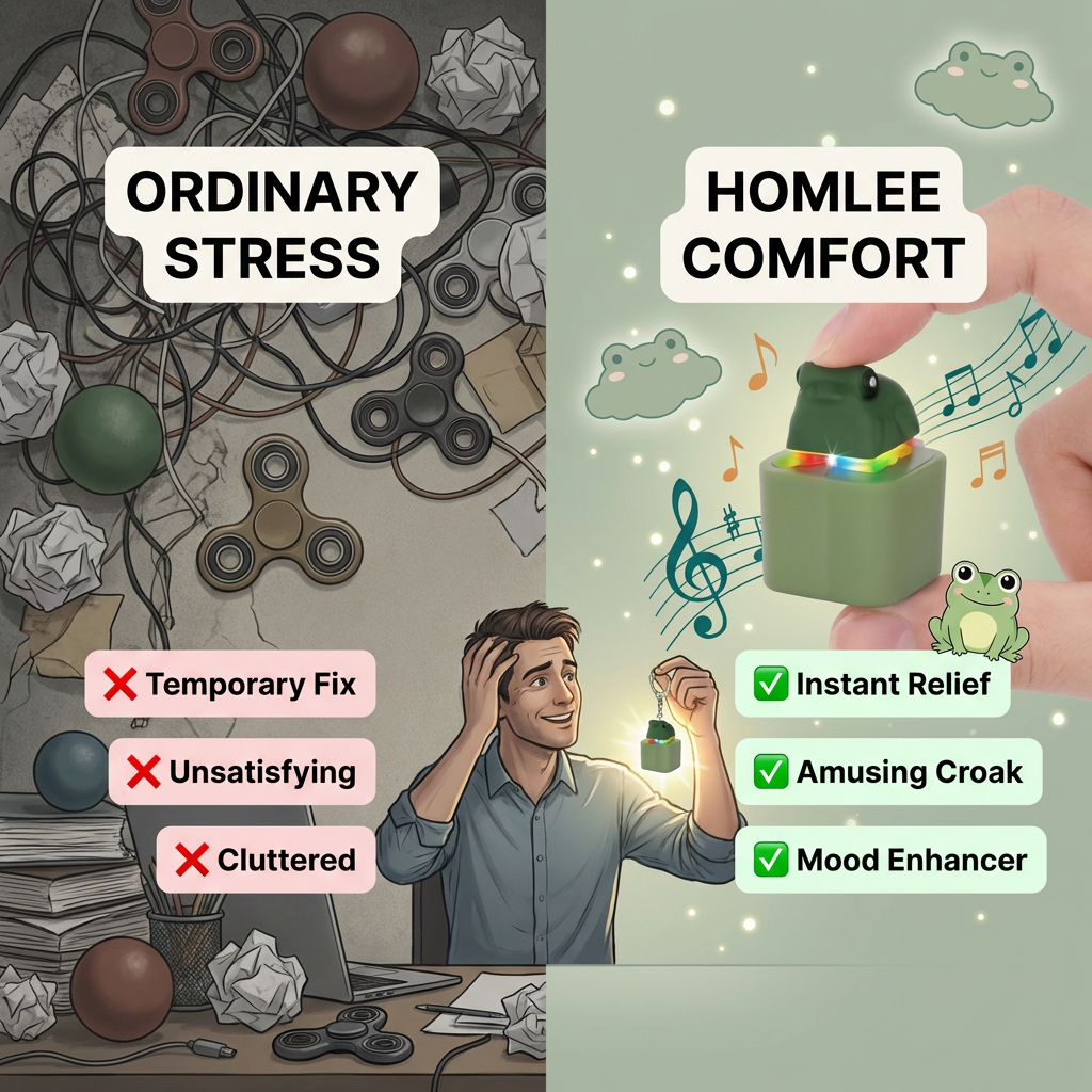 Authentic croaking sounds paired with tactile relief. Squeeze, listen, and feel the tension melt away. Your pocket-sized sanctuary for instant calm.